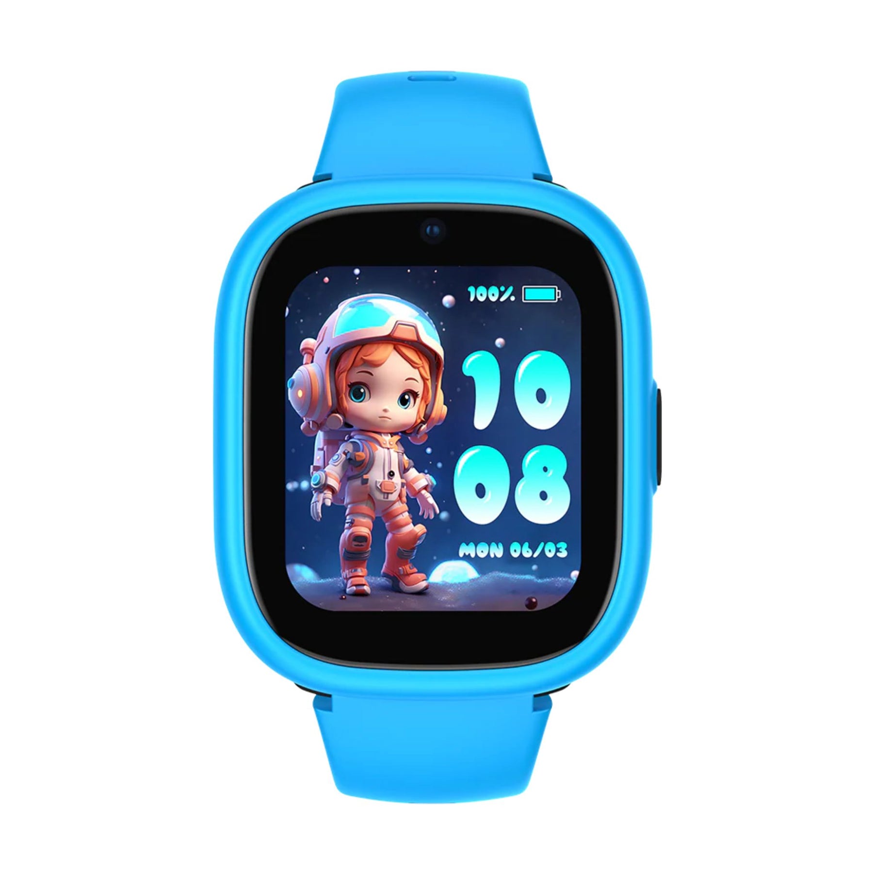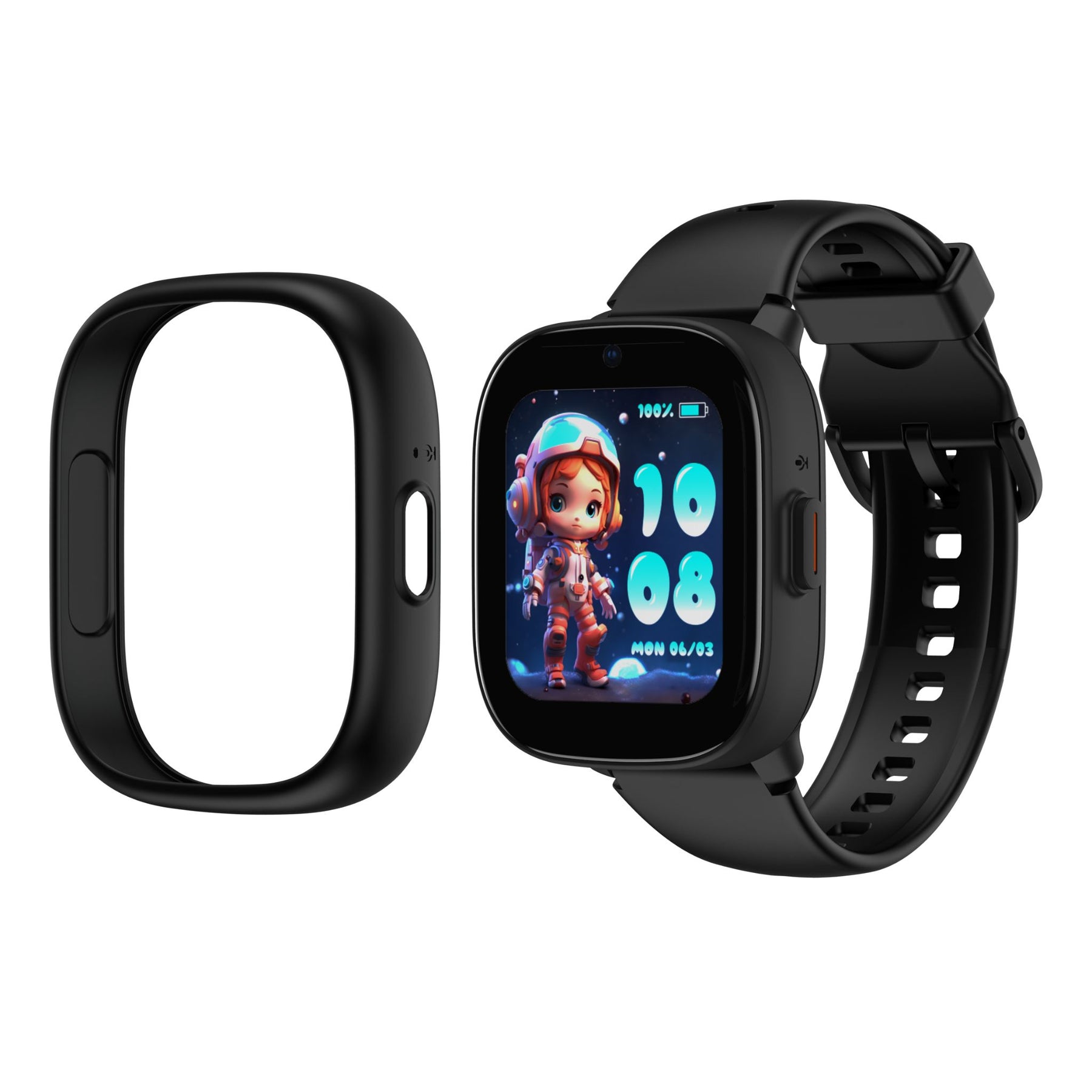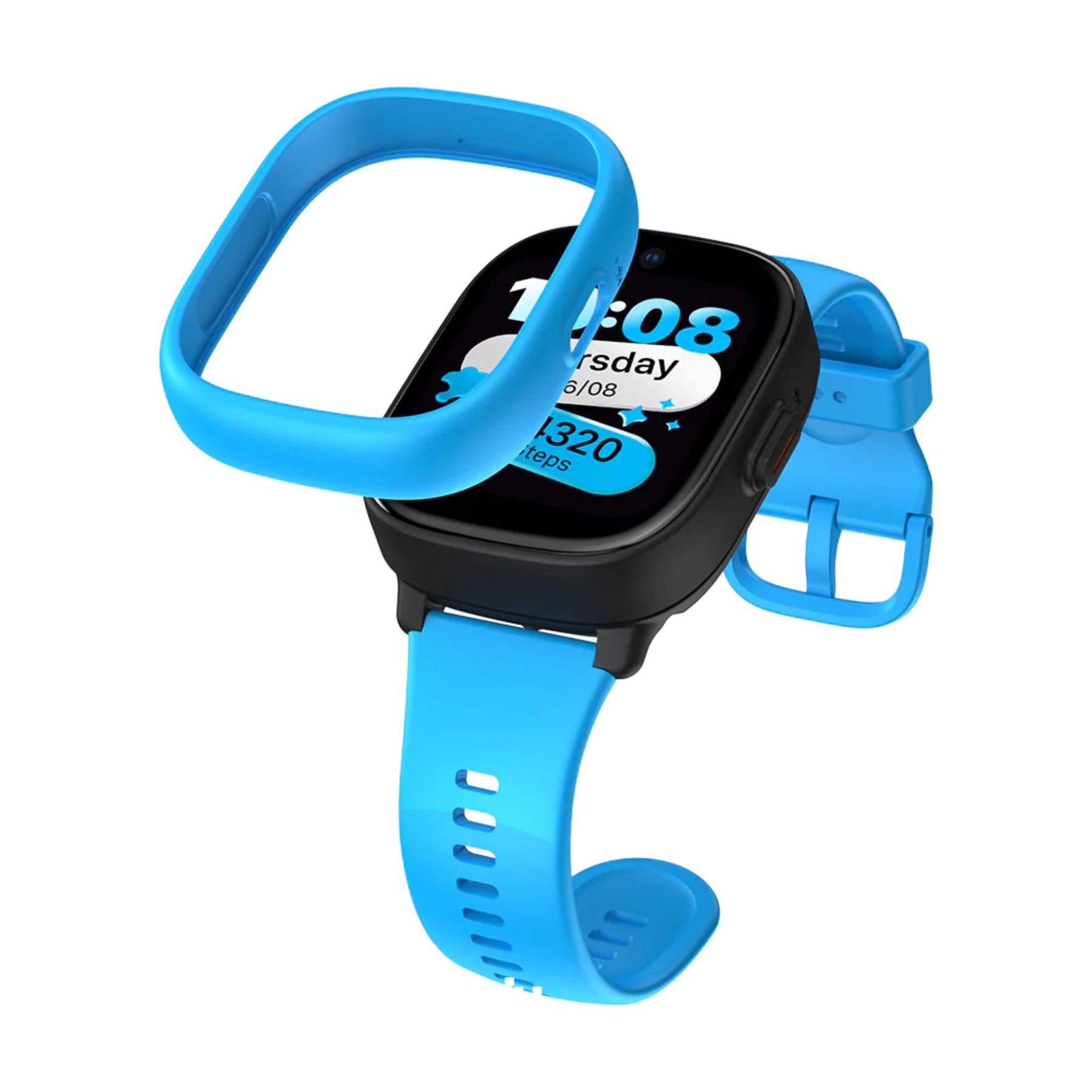 Klokken kommer med både sort og blått deksel og rem, slik at ditt barn kan velge selv hvordan klokken skal se ut.